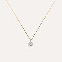 שרשרת יהלום מעבדה מרחף 1/2 קראט לב בזהב צהוב 14K. השרשרת בסגנון ונציה באורך 42 ס״מ ומגיעה בעיצוב ייחודי ללא בית זהב אלא השחלה דרך היהלום למראה מינימליסטי ונקי - יהלום מרחף אמיתי!