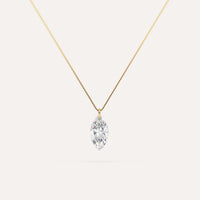 שרשרת יהלום מעבדה מרחף 1 קראט מרקיזה בזהב צהוב 14K. השרשרת בסגנון ונציה באורך 42 ס״מ ומגיעה בעיצוב ייחודי ללא בית זהב אלא השחלה דרך היהלום למראה מינימליסטי ונקי - יהלום מרחף אמיתי!