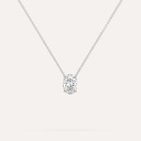 שרשרת יהלום מרחף המשובצת יהלום טבעי 1 קראט אובל בזהב לבן 14K. השרשרת מגיעה בעיצוב קלאסי, מיוצרת בעבודת יד כחול לבן.