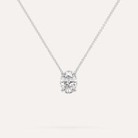 שרשרת יהלום מרחף המשובצת יהלום טבעי 2 קראט אובל בזהב לבן 14K. השרשרת מגיעה בעיצוב קלאסי, מיוצרת בעבודת יד כחול לבן.