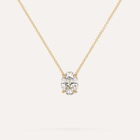 שרשרת יהלום מרחף המשובצת יהלום טבעי 2 קראט אובל בזהב צהוב 14K. השרשרת מגיעה בעיצוב קלאסי, מיוצרת בעבודת יד כחול לבן.